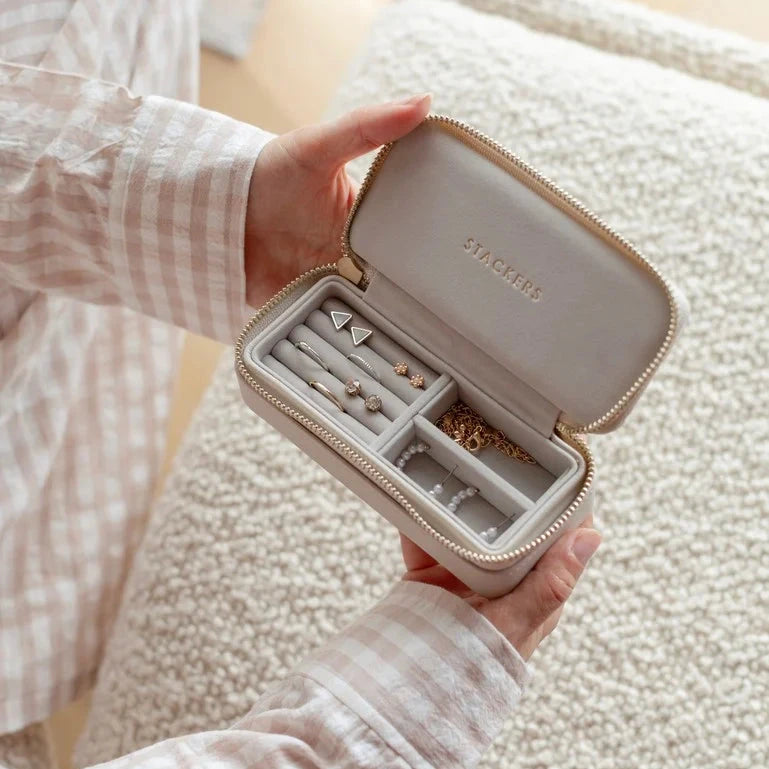 Een travel jewellery box of jewellery roll is onmisbaar om sieraden georganiseerd en beschermd mee te nemen. Deze compacte juwelendoosjes passen perfect in je toilettas of handbagage en voorkomen dat kettingen in de knoop raken.