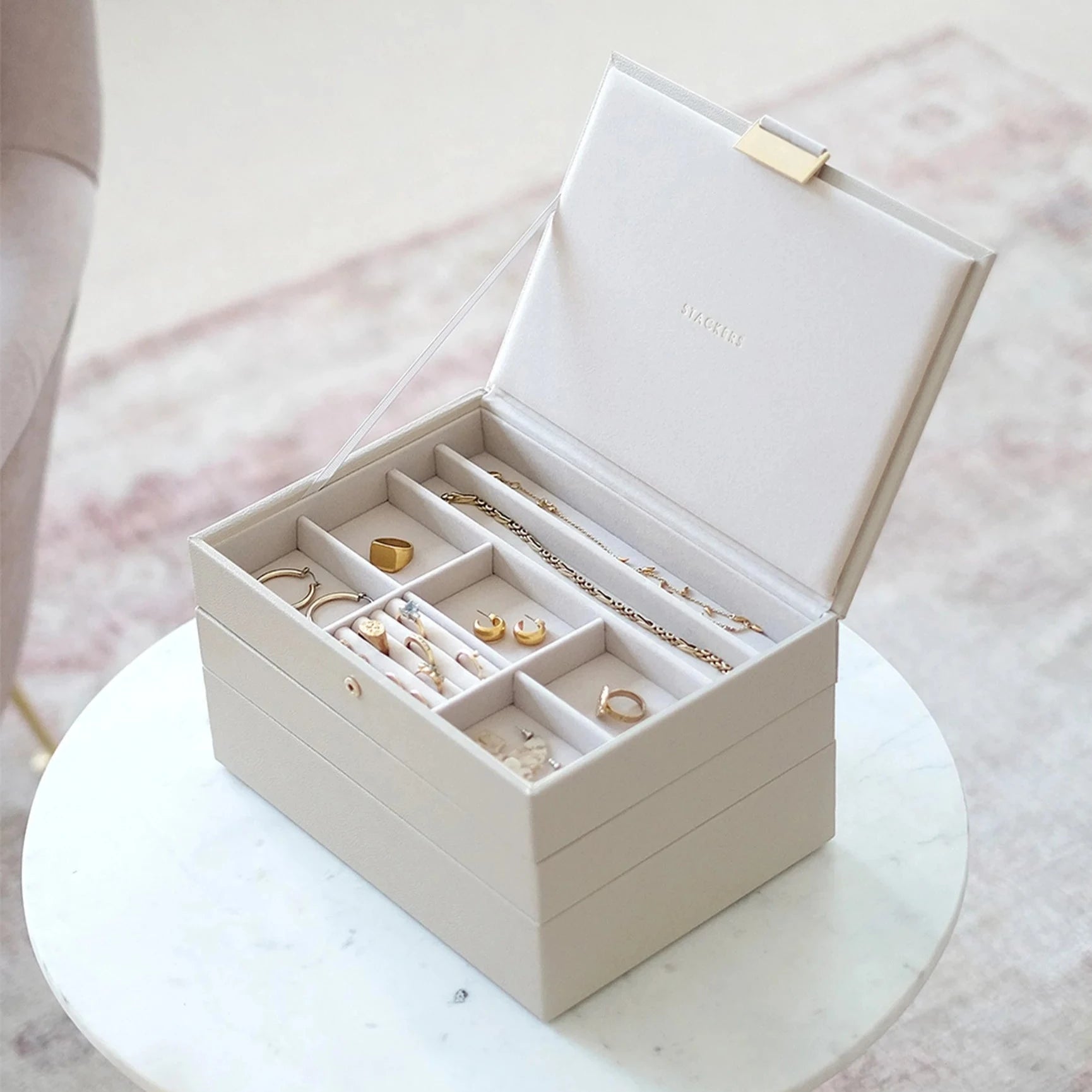 STACKERS est une entreprise familiale spécialisée depuis 1922 dans la conception de boîtes à bijoux et supports à bijoux de haute qualité. Avec plus d'un siècle d'expérience et de savoir-faire, STACKERS offre une large gamme d'organisateurs de bijoux, y compris des mini boîtes à bijoux, des boîtes à bijoux de présentation et des boîtes à bijoux XL. Ces produits sont conçus pour garder vos bijoux en sécurité et bien organisés. Découvrez la collection de boîtes à bijoux classiques ou explorez les dernières boîtes à bijoux de présentation pour une solution de rangement élégante et fonctionnelle.