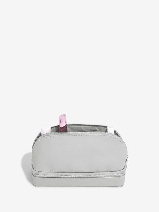 De Cosmetica & Juwelentas is een 2-in-1 opbergtas met twee aparte vakken om je make-up en sieraden netjes georganiseerd te houden. Het vak met rits aan de onderkant is ontworpen om je sieraden veilig op te bergen, met een uitneembaar halskettinggedeelte, een ringenrol, een uitneembaar oorbelgedeelte en kleine vakjes voor extra snuisterijen. In het grote bovenste vak past je make-upcollectie en er is een klein vakje met een afneembaar spiegeltje voor onderweg.