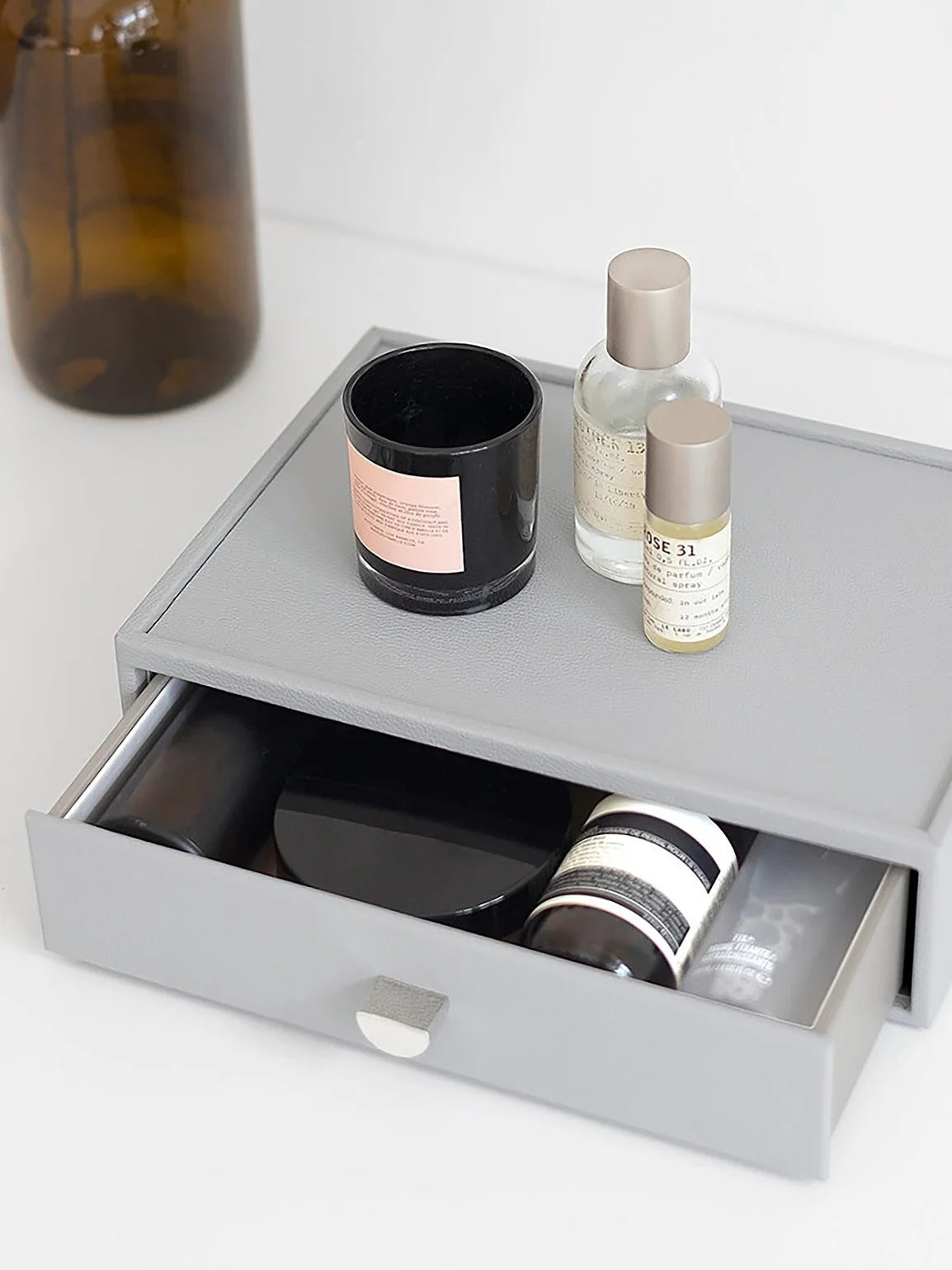 Deze lade voor de makeup-organizer is speciaal ontworpen om bij je Stackers Makeup Organizer te passen. Hij heeft een kunstlederen buitenkant en een afneembare, gemakkelijk schoon te maken voering. Combineer hem met de Makeup Organizer om je ultieme make-upopslag te creëren. Groeit je collectie? Geen probleem – voeg zoveel lagen toe als je nodig hebt!